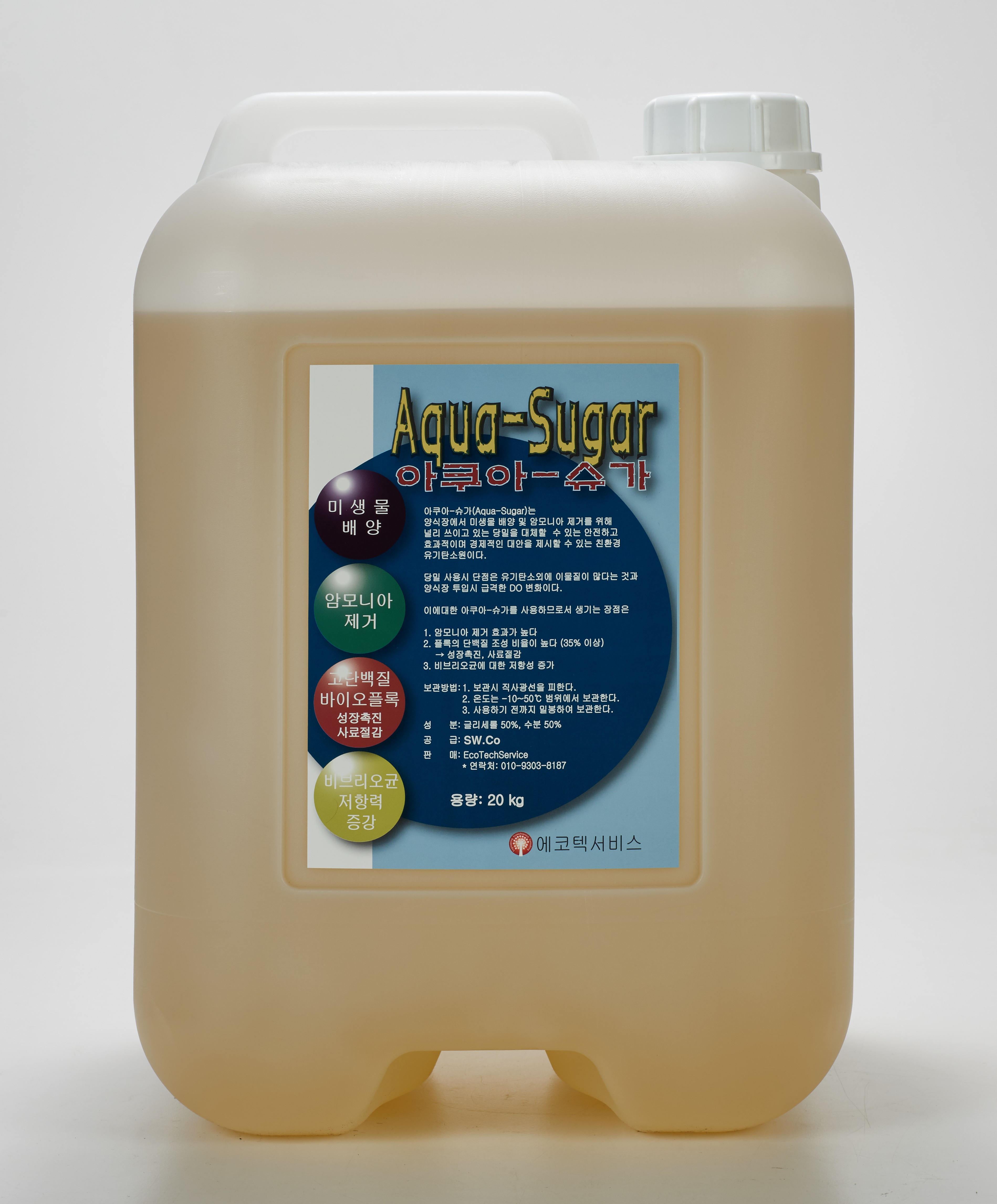 Aqua-Sugar는 양식장에서 미생물 배양 및 암모니아 제거를 위해 널리 쓰이는 당밀을 대체할